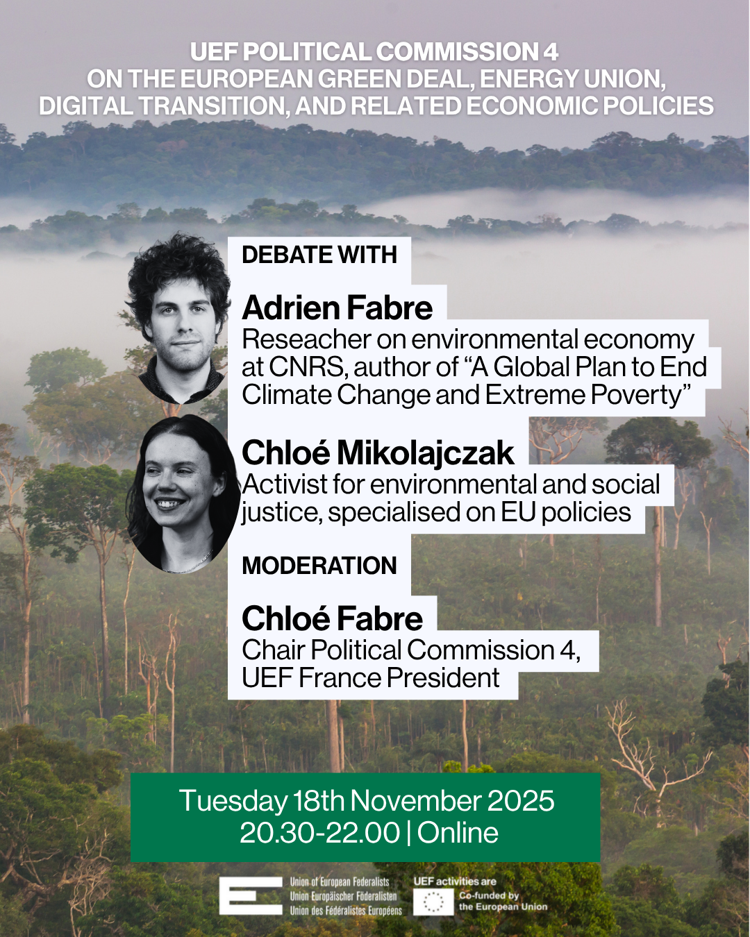 With this debate we aim at opening the discussion and gather the opinion of UEF members to prepare a press release related to COP30 and next a resolution on Ecological transition and federalism for the next UEF Congress.